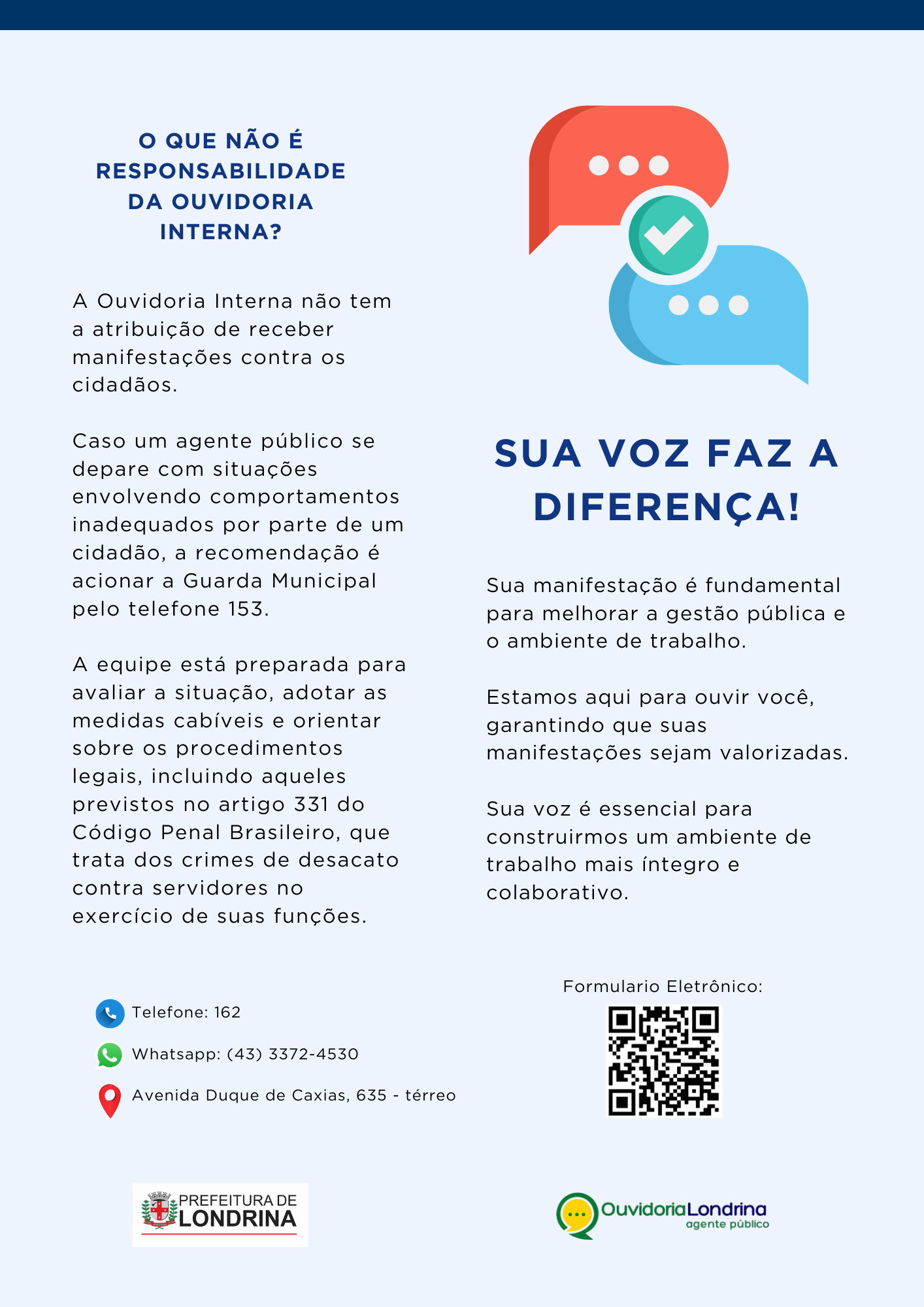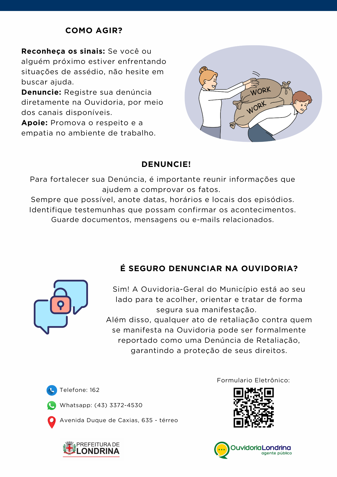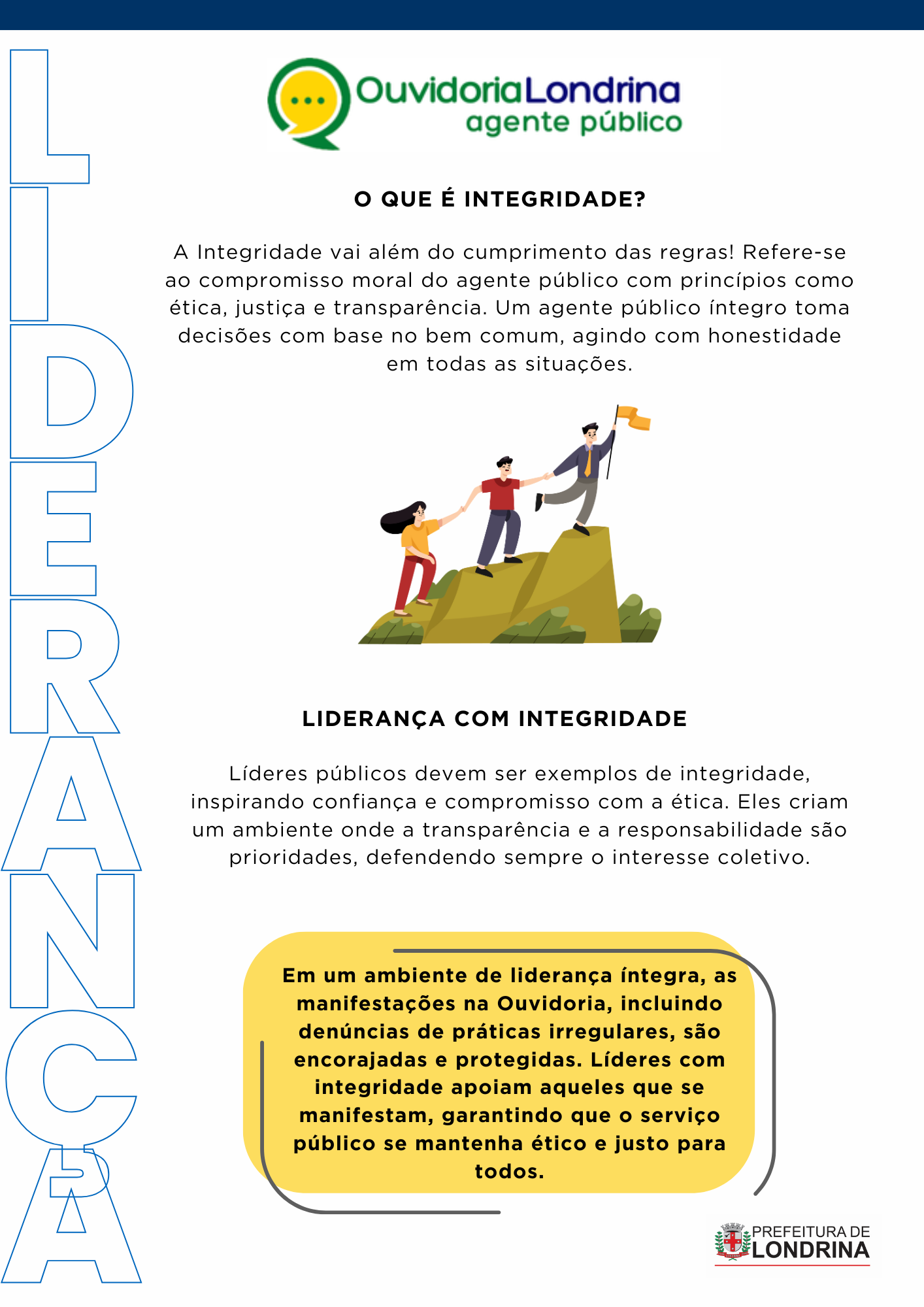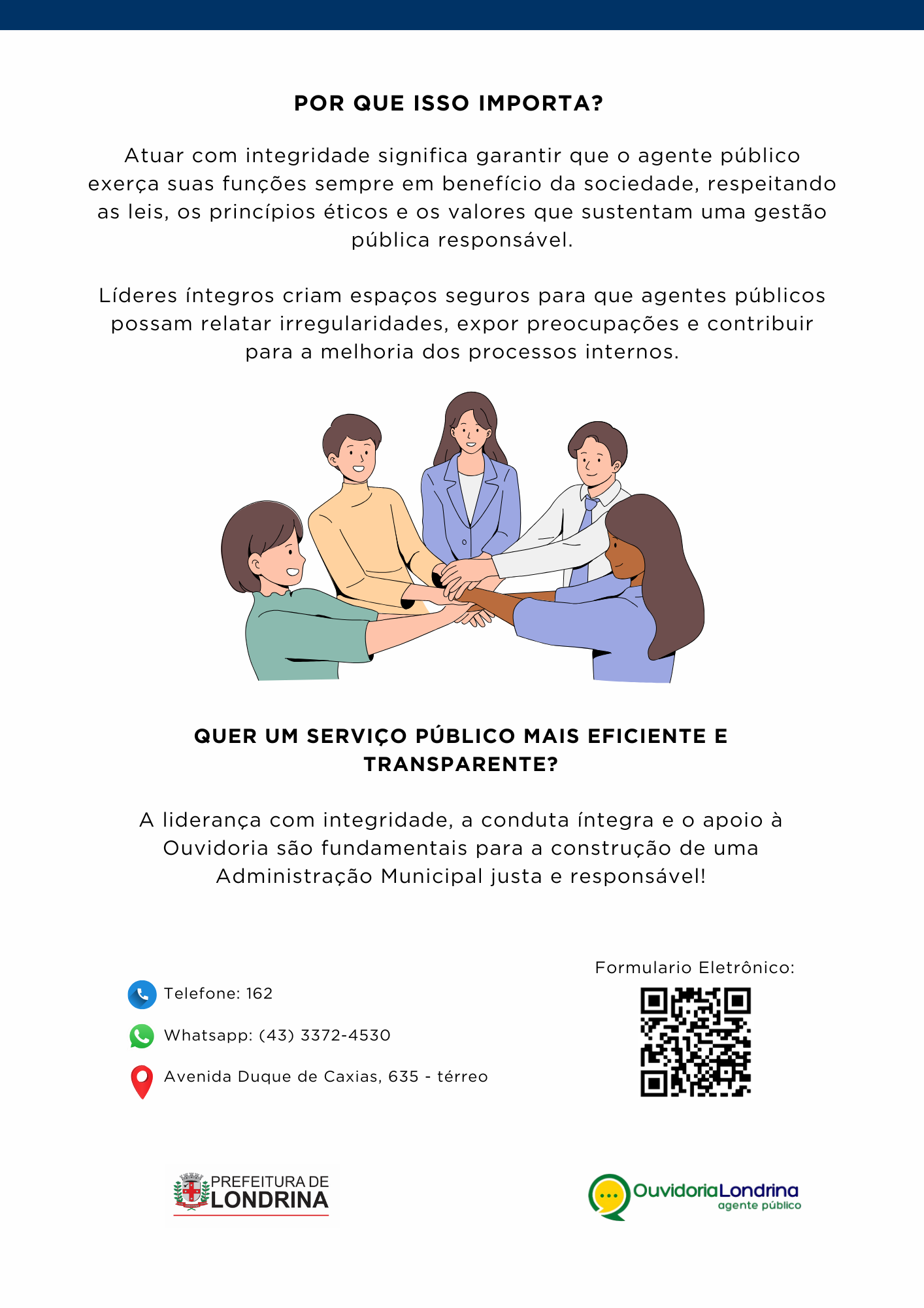 💬 Esses conteúdos são essenciais para lidar com os desafios do dia a dia na Administração Municipal e estão alinhados com a Política de Prevenção e Enfrentamento ao Assédio Moral e Sexual e à Discriminação. Essas ações fazem parte do Programa de Integridade da Prefeitura de Londrina, conforme a Lei Municipal 13.310/2021.