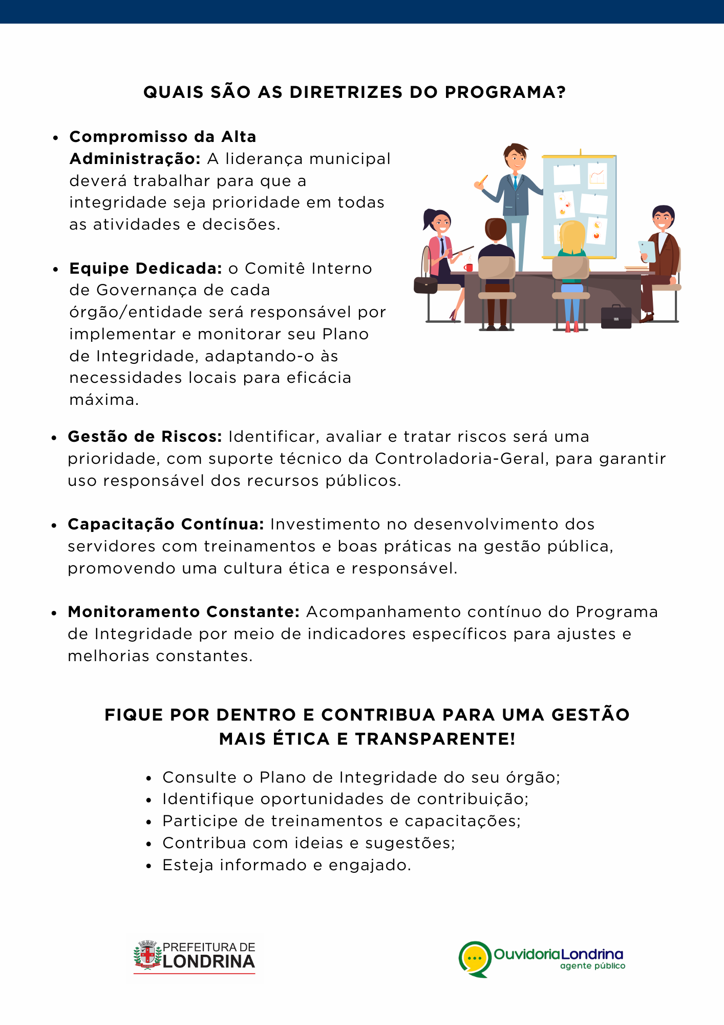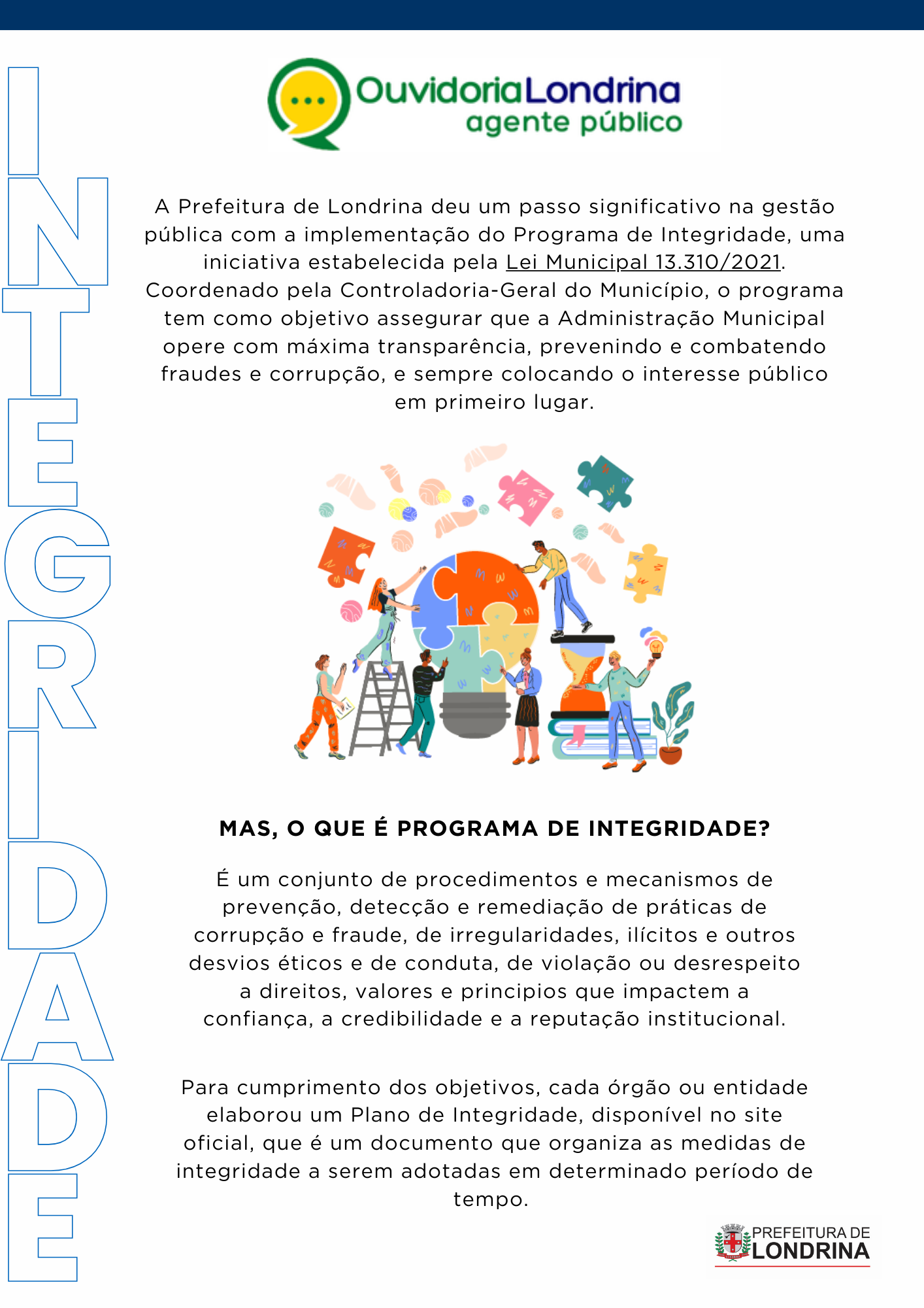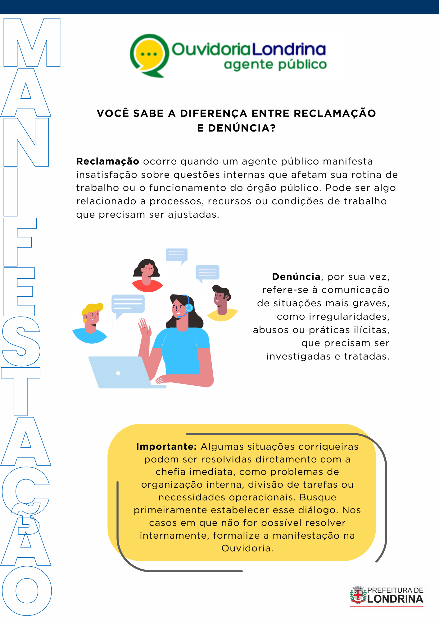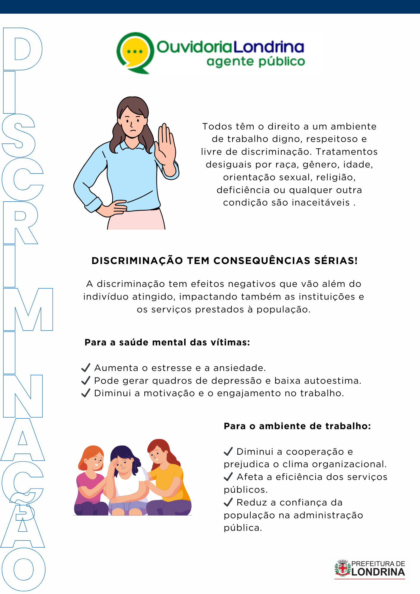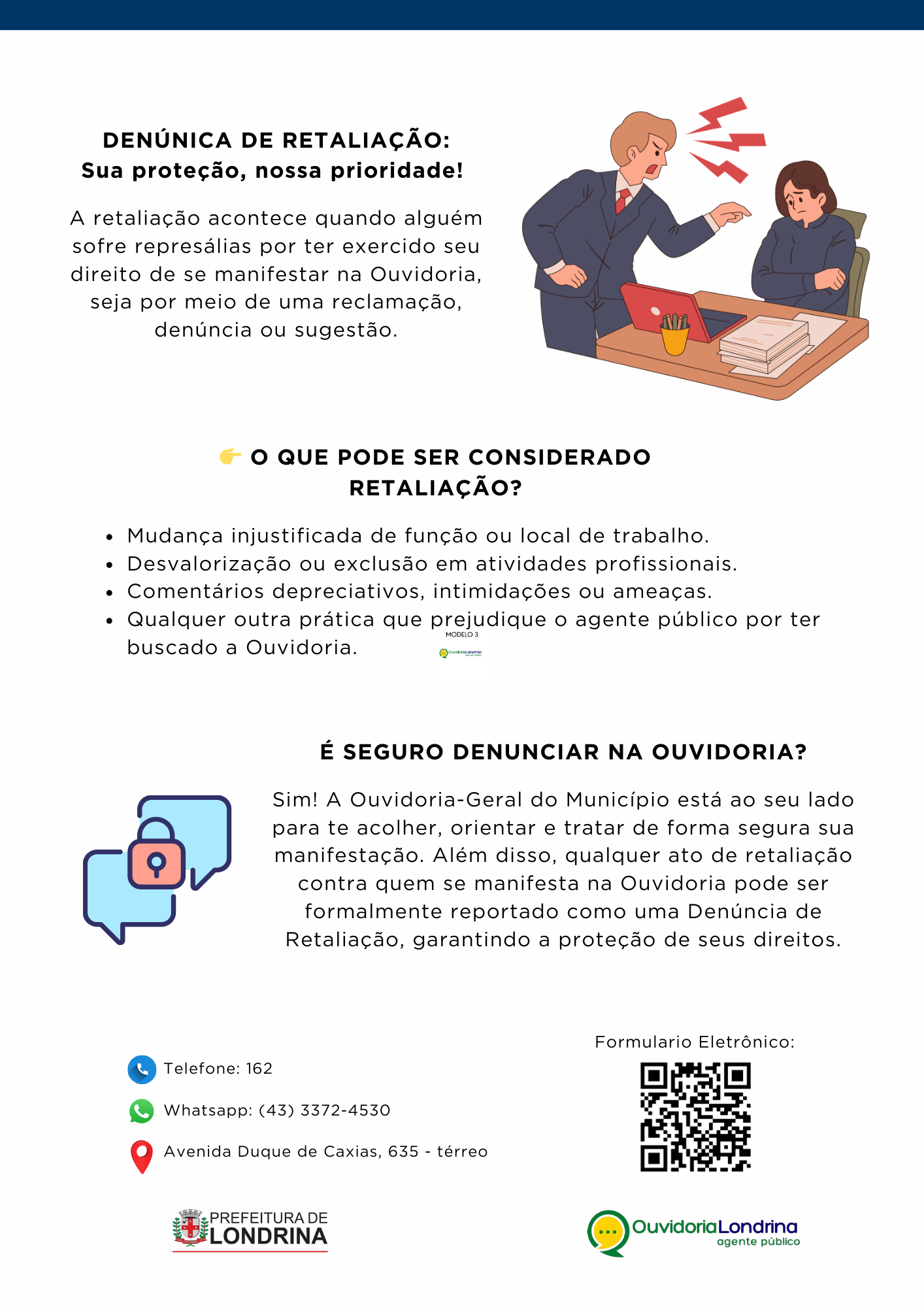 💬 Esses conteúdos são essenciais para lidar com os desafios do dia a dia na Administração Municipal e estão alinhados com a Política de Prevenção e Enfrentamento ao Assédio Moral e Sexual e à Discriminação. Essas ações fazem parte do Programa de Integridade da Prefeitura de Londrina, conforme a Lei Municipal 13.310/2021.